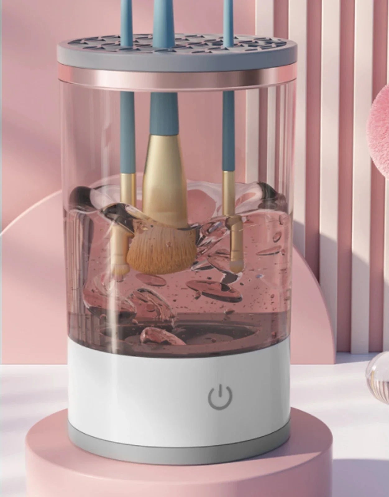 CleanBrush Pro™ to elektryczne urządzenie do czyszczenia pędzli, które robi robotę za Ciebie. Dzięki szybkiemu wirowaniu usuwa brud, sebum i resztki kosmetyków, pozostawiając pędzle czyste i gotowe do użycia w kilkadziesiąt sekund. Idealne dla wizażystek i każdej osoby, która chce dbać o higienę makijażu bez męczącego szorowania.